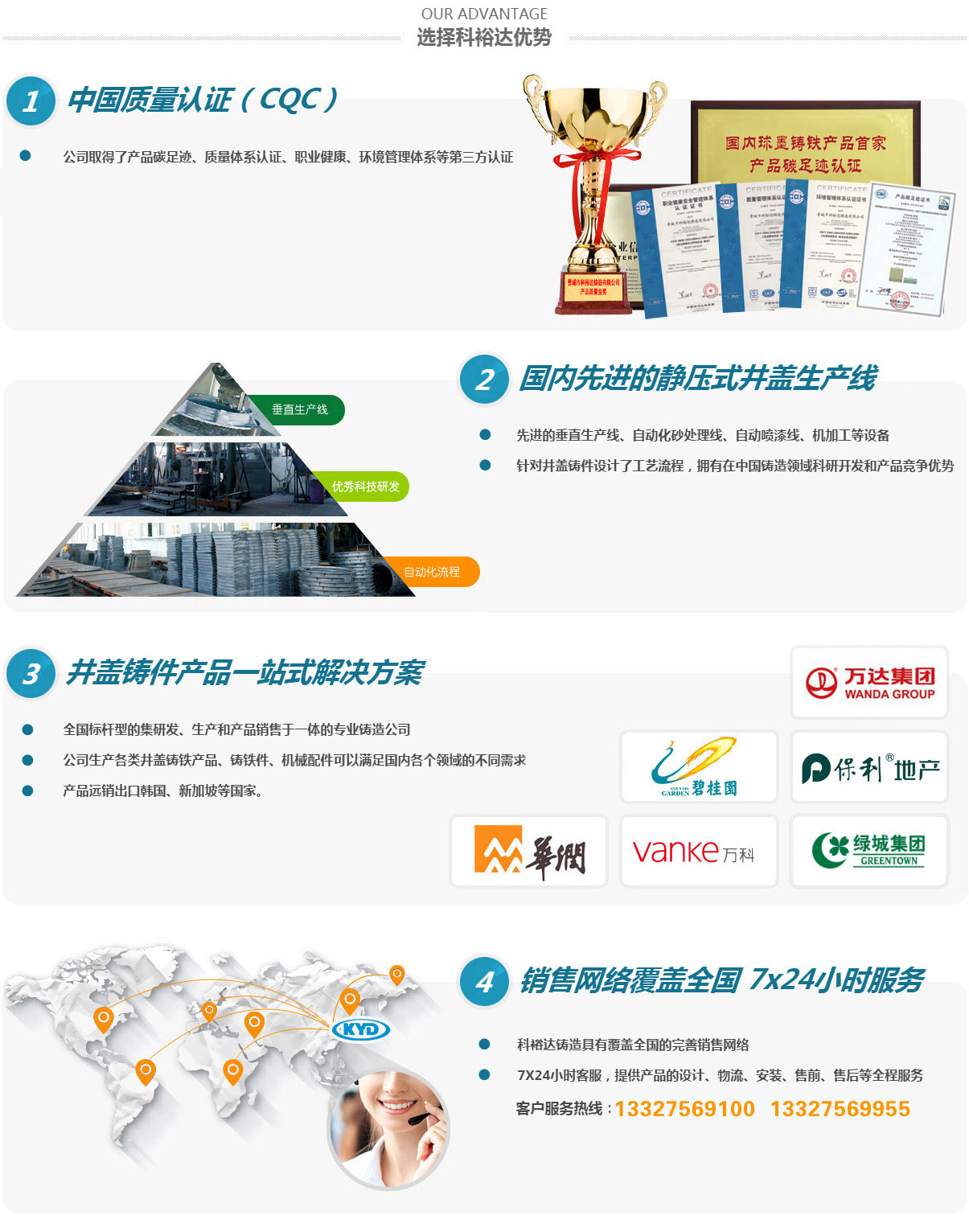 晉城市科裕達鑄造有限公司,位于山西省晉城市南村鎮智能綠色鑄造創新產業園區,成立于2014年2月,注冊資金2億元整,產量10萬噸。經過這些來的發展,已經成為全國集研發、生產、銷售各類球墨鑄鐵井蓋、箅子產品于一體的專業鑄造公司,是已知國內較大的球墨鑄鐵井蓋生產基地。2016年10月,公司順利通過了二級安全生產標準化的評審,正式成為一家二級安全生產標準化企業。2017年3月,山西省安全生產監督管理局授予公司2016年冶金工貿行業“安全生產先進單位”稱號。2017年11月被山西省中小企業局授予“專精特新”中小企業榮譽。2020年8月被認定為國家高新技術企業。2021年5月被中國鑄造協會認定為“單項冠軍企業”。2021年9月被山西省中小企業局授予“專精特新小巨人”企業榮譽。2022年被中國鑄造協會認定為第四屆鑄造行業排頭兵企業。2023年7月被工信部認定為“國家級專精特新小巨人”企業榮譽。2024年被省工信廳認定有“省級綠色工廠”及“省級企業技術中心”。